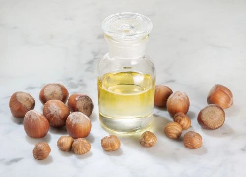 - L'huile de noisette du Lot-et-Garonne constitue le cœur de la formule. Sa structure moléculaire particulièrement fine lui permet de pénétrer instantanément l'épiderme sans laisser de traces.